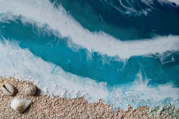 Resin Art – resin gives depth and movement within a piece. Artwork created using resin tend to have a brilliance, gloss, depth and clarity that you cannot find in most other mediums.