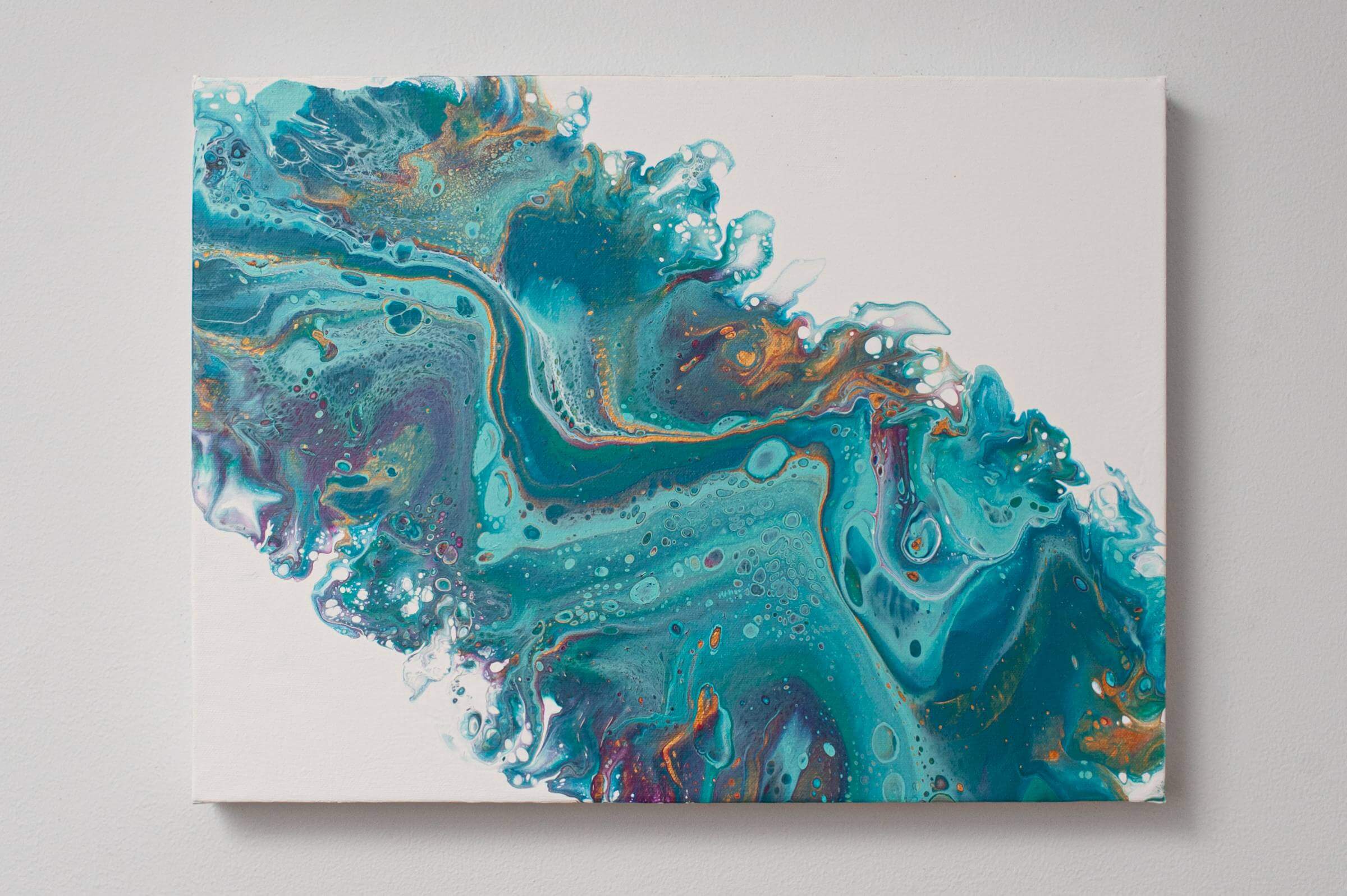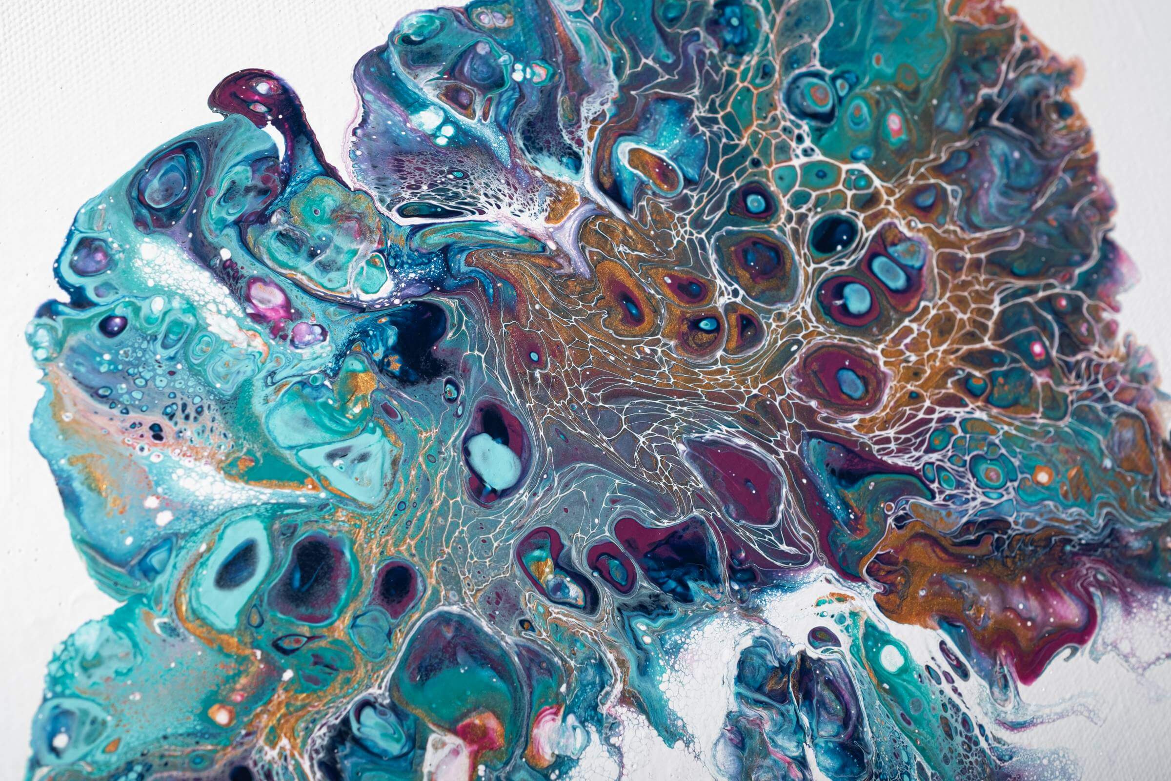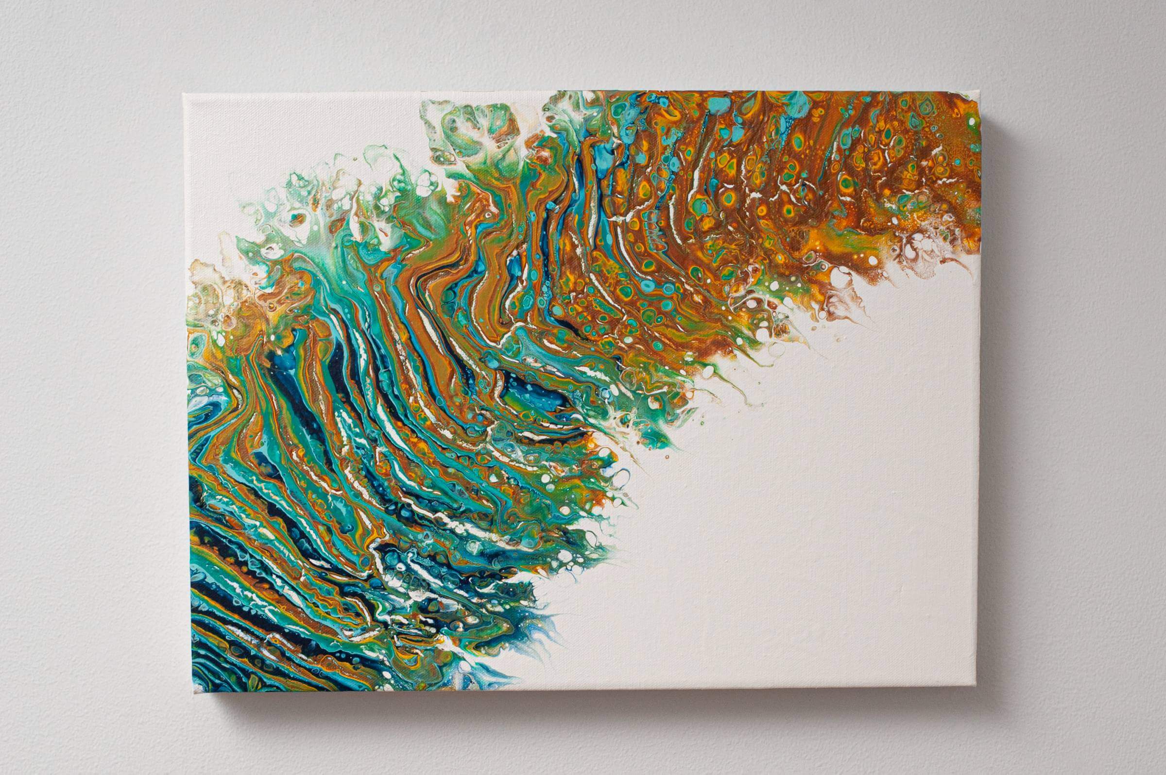 Acrylic fluid art is an abstract art technique where the acrylic paints are mixed with a medium to give a pouring consistency. There are many different ways that the artist can manipulate the paint and the canvas to create beautiful outcomes. Oils can be added to the mixture to produce even more spectacular results with the pouring mixture. Everyone sees something different in a finished piece which makes this technique so special for me. I only use professional museum-quality gallery cotton canvases, museum-quality products that will not fade over time.