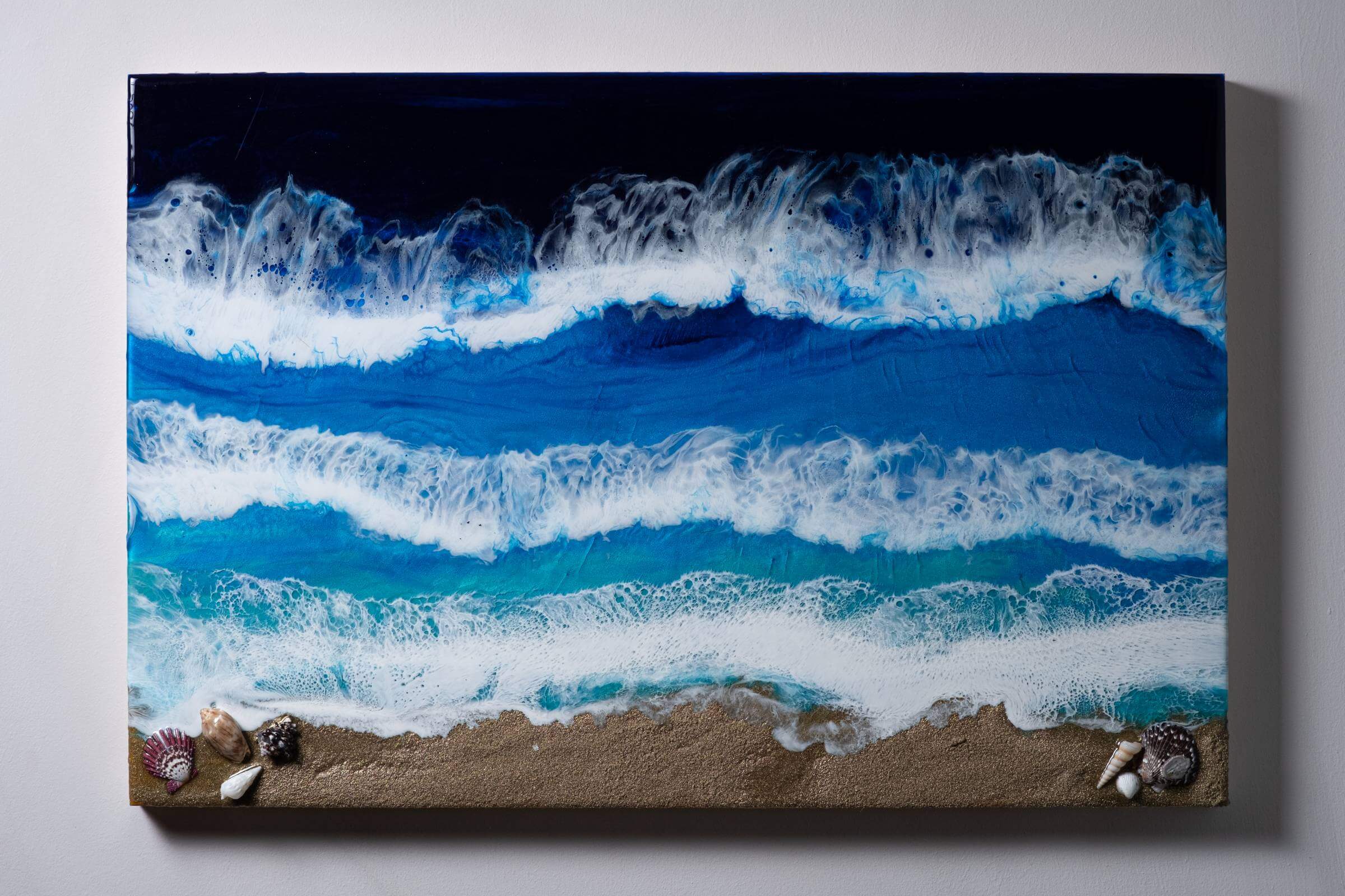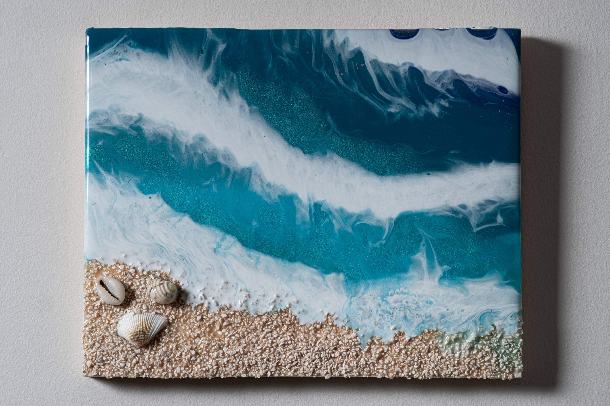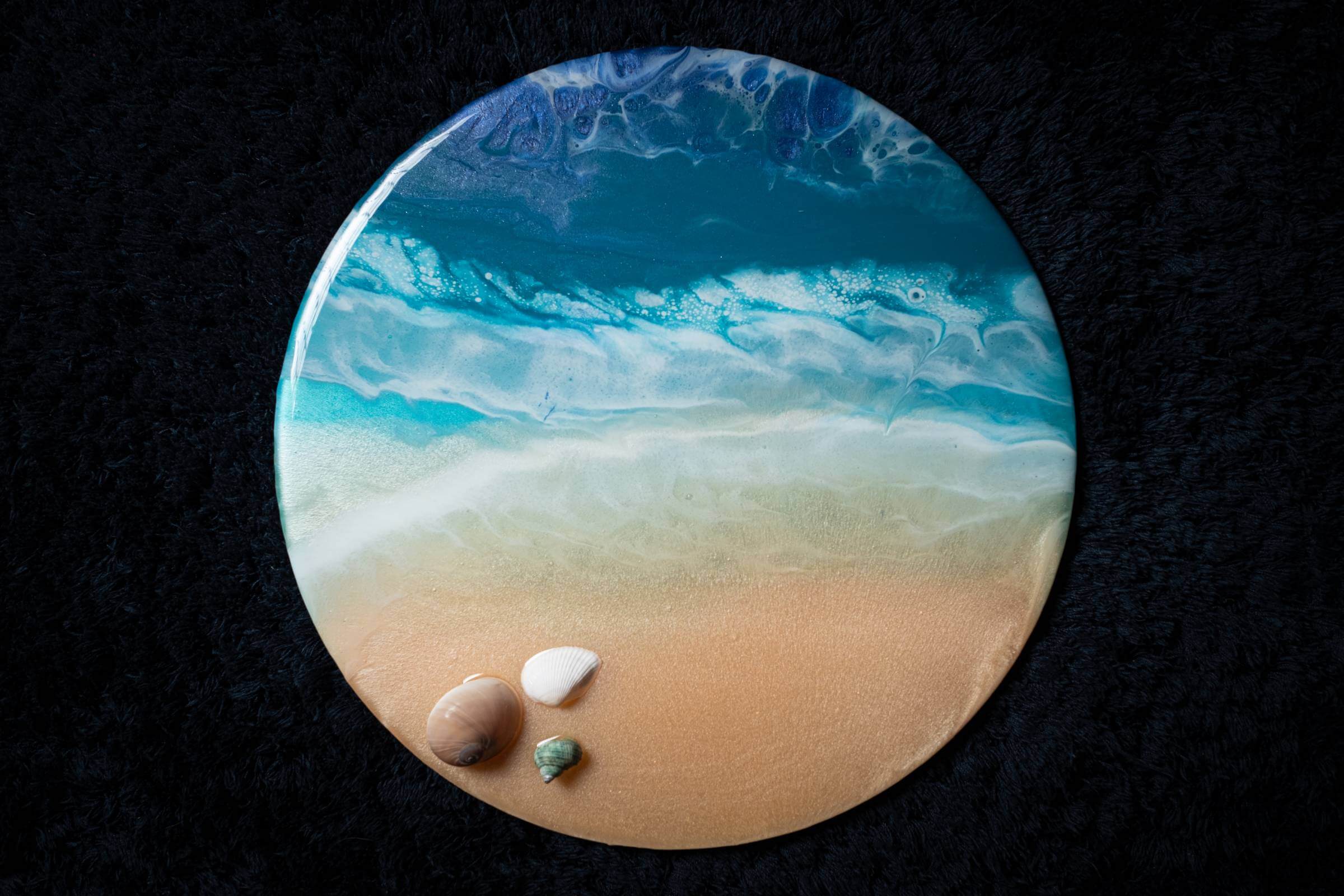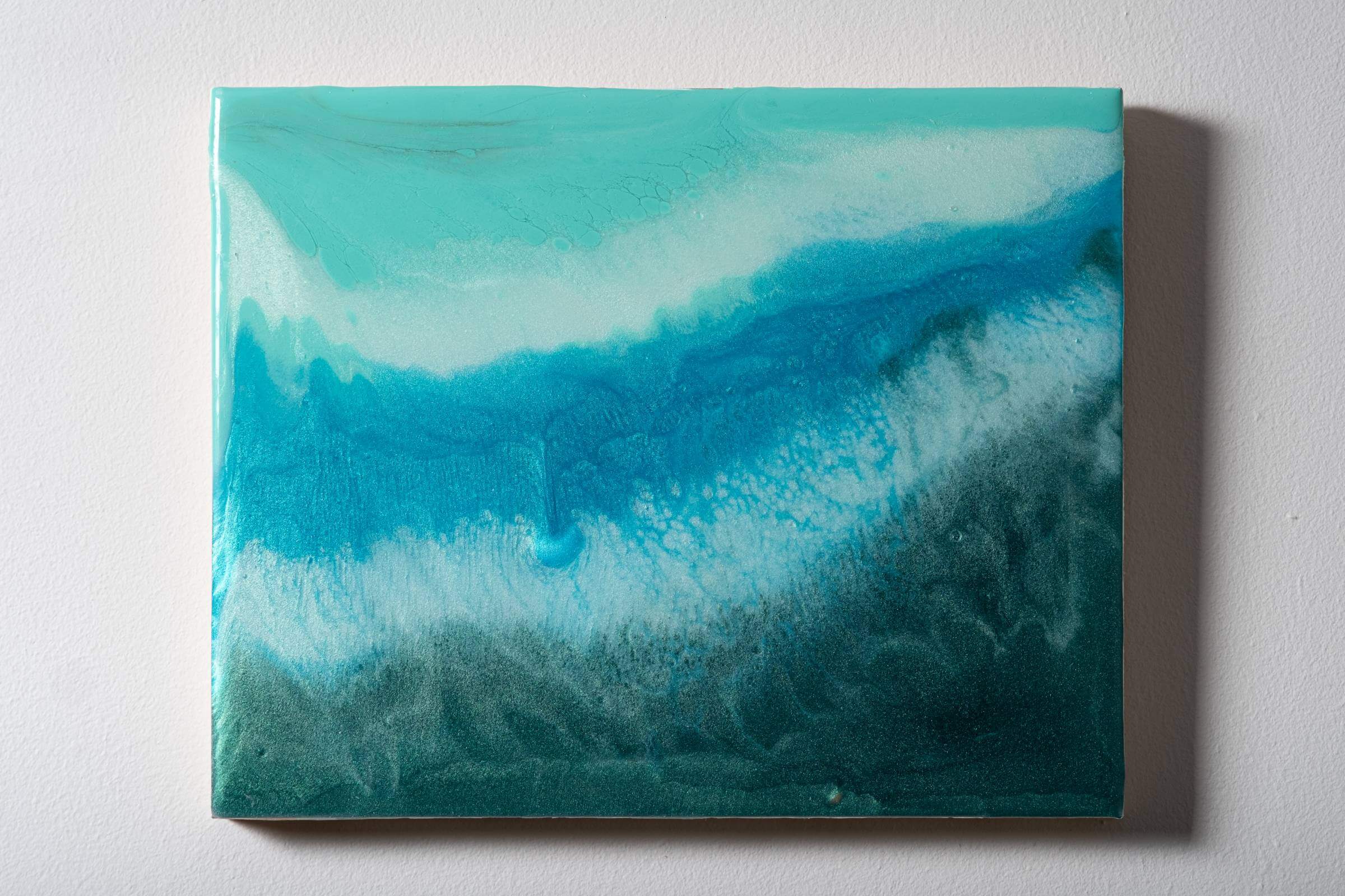 Epoxy resin is a two-part compound that is mixed to create a medium that you can add pigments to. It starts as a liquid, which after adding colour hardens over a period of usually 24 hours. It can be used in a variety of ways, but when used to create paintings it produces amazing results, though layering and manipulating the medium. Semi-precious stones and crystals are also used to enhance some of the creations. The result upon completion is a beautiful piece of art with a high gloss finish. All my resin art is made on MDF or cradled wooden boards.
